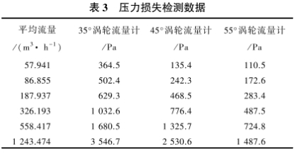 表3列出了(le)安裝3種不同(tóng)螺旋角渦輪(lun)流量計在儀(yí)表取壓📧口處(chù)的壓力損失(shi)。
