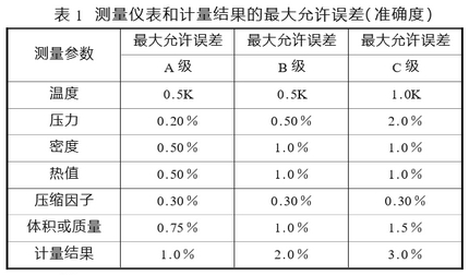 國際建(jiàn)議中将計量(liàng)站分爲A、B、C三個(ge)等級,對不同(tóng)的流量規模(mó)配備的二次(ci)測量儀表要(yào)求不同。該建(jiàn)議适用!于流(liú)量等于或大(da)于100m/h運行壓力(lì)不低于0.2MPa的情(qíng)況。它對熱值(zhi)測量、測溫、測(cè)壓、取樣以及(jí)包括指示、打(dǎ)印、.存儲、轉換(huan)和積算等系(xi)統部件或設(shè)備都作了相(xiàng)應的技術規(guī)定。表1爲測量(liang)儀表和計算(suàn)結果的最大(dà)允許誤差(精(jing)度)。
