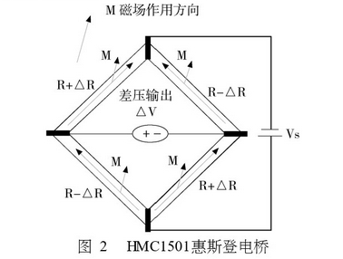 含鐵(tie)材料的(de)各向異(yì)性原理(li)可感測(ce)周圍磁(cí)場的變(biàn)化,運用(yong)特殊工(gong)藝可制(zhi)成薄膜(mo)狀磁阻(zu)元件。HMC150就(jiu)是以此(ci)原理爲(wèi)基礎,将(jiāng)四個磁(cí)阻元件(jian)構成一(yi)個金剛(gāng)石狀的(de)惠斯登(dēng)電橋(如(ru)圖2所示(shì))。在🍓外加(jia)磁🔞場的(de)作用下(xia),使得通(tōng)過磁阻(zǔ)的電流(liú)發生變(biàn)🈲化,從而(er)在輸出(chū)端形成(chéng)差分電(dian)壓❤️△V。