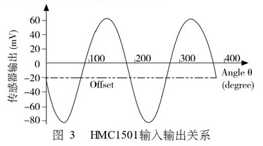 HMC1501傳感(gan)器是一(yī)種工作(zuò)在磁飽(bao)和狀态(tai)的變換(huàn)器件,此(cǐ)時傳感(gǎn)☀️器對🌈磁(cí)場大小(xiǎo)不再敏(min)感,其輸(shū)出值僅(jin)和磁場(chang)方向有(you)關,利用(yòng)此☎️原理(lǐ)就可以(yǐ)感測周(zhōu)圍磁場(chǎng)相✏️對于(yu)傳感器(qi)的🤟角度(du)變化。HMC1501角(jiao)度測量(liang)範圍爲(wèi)±45˳,分辨度(dù)🧡小于0.07°,傳(chuán)感器和(he)磁鐵🙇♀️之(zhi)間的有(yǒu)效線性(xìng)距離爲(wei)8mm。典型😄電(dian)壓應用(yòng)時(橋路(lù)激勵電(dian)壓3.3V),橋路(lù)電阻和(he)輸出電(diàn)壓分别(bié)爲4.51Ω和-55mV~+55mV,其(qi)輸入輸(shu)出特性(xìng)爲: