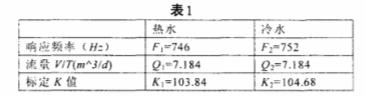 不同溫(wēn)度下,用(yòng)水标定(dìng)渦輪k值(zhí)的情況(kuang)如表1,從(cong)表1中可(kě)以發現(xiàn),由于水(shui)的溫度(du)有所增(zēng)加,渦輪(lun)的K(K=F/Q)值相(xiàng)對減小(xiǎo)。