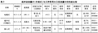 超聲(sheng)波流量(liàng)計(外縛(fu)式)與幾(ji)種常用(yòng)大口徑(jing)流量計(jì)的性能(neng)🔴比較👄如(rú)表3所示(shì)。