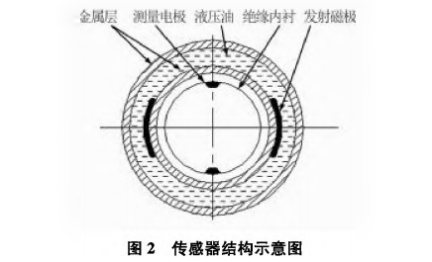 在(zài)油田井下流體流(liú)量測量中,由于井(jing)下注人流體複㊙️雜(za),管壁結垢現象嚴(yan)重,外流式電磁流(liú)量計受井壁變🌂徑(jing)影響,因此,儀✔️器設(shè)計爲内流式的電(diàn)磁流量計結構[6],整(zheng)體結構示意圖見(jiàn)圖1。将儀器與電纜(lan)相連💰接,電纜與井(jǐng)下管柱✂️固定,儀器(qì)坐人配水器中,整(zhěng)體跟随管柱下人(rén)井下指定位置,通(tōng)過配水器閥門開(kai)度調節注人量大(da)小。對注水井⚽進行(háng)測調時,給儀器供(gòng)電,注水井中流體(tǐ)通過進液口流人(ren)儀器測量通道内(nei),流經電磁流量傳(chuán)感器,電磁流量傳(chuán)感器随流量不同(tong)有相應的頻率輸(shu)出,流體經電磁流(liú)量傳感器檢測後(hou),通過配水器水嘴(zui)流人地層。電磁流(liú)量計的測量信号(hào)經由測量電路🍓處(chu)理,再通過電纜傳(chuan)人💘地面采集系統(tǒng)中,經地面采集軟(ruǎn)件處理可以直接(jiē)🌍讀出流量測量結(jie)果。