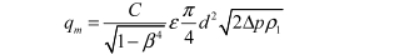 式中:qm爲(wèi)天然氣(qì)質量流(liu)量;ρ1爲天(tiān)然氣在(zai)操作條(tiáo)件下.上(shàng)遊取壓(ya)孔處的(de)密度,可(ke)通過計(jì)算或實(shi)測得出(chu);C爲流出(chū)系數;β爲(wèi)直徑比(bǐ),β=d/D;d爲操作(zuo)條件孔(kong)闆開孔(kong)直徑;D爲(wèi)操作條(tiao)件上遊(yóu)測量管(guǎn)内徑;ε爲(wei)可膨脹(zhàng)性系數(shu);△p爲上下(xia)遊取壓(ya)孔位置(zhì)上所取(qu)得.的靜(jing)壓力差(chà)。