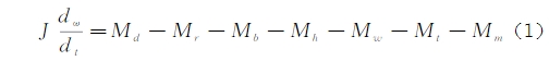 式(1)中,J爲葉輪轉動(dòng)動量;ɷ爲葉輪旋轉(zhuǎn)角速度;Md爲葉輪驅(qu)動力矩,Mr,爲👌葉片表(biǎo)面粘性摩擦阻力(li)矩;Mb爲軸與軸承間(jian)的粘性摩擦阻力(lì)矩;Mh爲輪毂周面上(shàng)粘性摩擦阻力矩(jǔ);Mw爲輪毂端面上的(de)粘性摩擦阻力矩(jǔ);Mt爲葉片頂端與殼(ké)♋體間隙的粘性摩(mó)擦阻力矩;Mm爲電磁(ci)阻力矩和軸承上(shàng)👄摩擦阻力矩之和(hé)。
