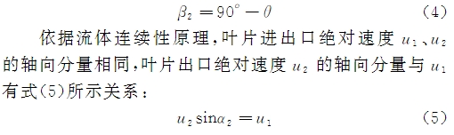當流量恒定(ding)時,式(3)中ρ、Q、u1、a1爲已知量(liàng),考慮到葉輪葉片(pian)旋轉方向上流體(tǐ)進出口線速度相(xiang)同,記進出口線速(su)度分🤟别設爲Ur1和ur2,ur1=ur2=ur;記(ji)流體與葉輪葉片(piàn)出入口的相對角(jiao)速度♉分别爲👨❤️👨ɷ1和ɷ2,則(ze)圓周運動方向夾(jiá)♌角β2與葉片與🔅軸線(xiàn)結構夾角θ之間😄有(you)式(4)所示關系: