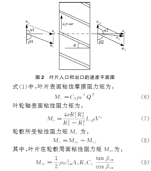 式(9)中(zhong),ɷh?爲輪毂處角速度(du);βw爲平均相對流速(sù)方向與葉🔅輪軸線(xian)👈間角度;Ah爲葉片部(bu)分輪毂面積,R0爲葉(ye)輪所在殼體内徑(jìng)🈲,Rh爲輪毂半徑