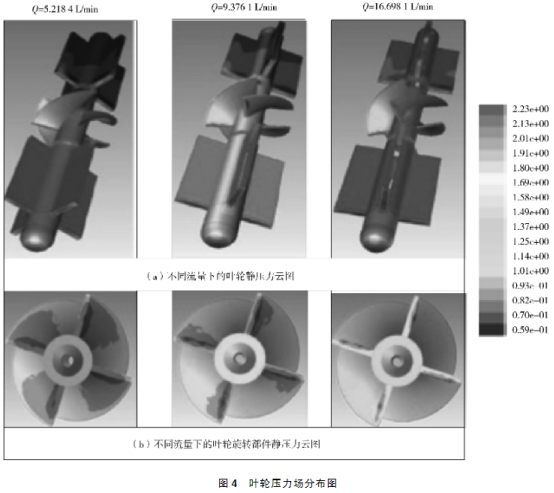 (2) 随着(zhe)流量增加,葉輪、導(dǎo)流架上遊面形成(cheng)的靜壓變高,葉片(pian)上遊💁面和葉片下(xià)遊面的壓力随着(zhe)流量的增加.而減(jian)小。