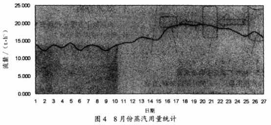 抗振型渦街(jie)蒸汽流量計使用(yòng)一個月,對數據進(jin)行㊙️收集和統計,得(de)到每天蒸汽用量(liang)(參見圖4)。
