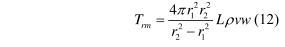 在研(yán)究所用切(qie)向式固井(jing)泥漿流量(liang)計的葉輪(lún)與軸之間(jian)采⭕用軸承(cheng)鏈接,軸與(yu)軸承内徑(jìng)之間存在(zai)一定間隙(xì),在流量計(ji)的工作狀(zhuang)🈲态下,流量(liàng)計腔體内(nèi)充滿流體(tǐ),從🎯而軸與(yǔ)葉輪内孔(kǒng)的間隙也(yě)會充滿流(liú)體,所以葉(yè)輪會🏃♂️受到(dào)流體與内(nei)孔表面間(jian)的粘✏️性阻(zu)力矩Tm。由于(yú)兩者之🔅間(jiān)的間隙很(hěn)小,可以将(jiāng)縫隙間的(de)液體🙇♀️流動(dòng)狀态看作(zuò)是層流狀(zhuàng)态,因此的(de)表達式如(rú)✌️式(12)所示: