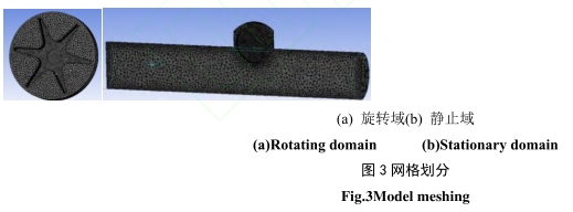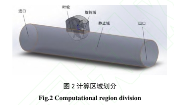 建立流(liu)量計内流(liu)道和旋轉(zhuǎn)葉輪的三(san)維模型,并(bìng)進行計算(suan)區域劃分(fen),如圖2所示(shi)。