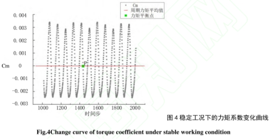 當渦(wo)輪流量計(ji)達到穩定(ding)工況時,流(liú)量的葉輪(lún)轉速也應(yīng)趨🈲于一穩(wen)定值,進而(er)儀表系數(shù)K也趨于一(yi)穩定💛值108]。在(zài)流量計的(de)仿真過程(chéng)中,爲了得(dé)到穩定空(kōng)工況下的(de)葉輪轉速(sù),對葉輪的(de)旋轉軸進(jìn)行力矩系(xi)數Cm和葉片(pian)表面阻力(li)drag的監控。計(jì)算過程受(shòu)到葉輪本(ben)身的結構(gòu)特點影響(xiang),力矩系數(shù)💋Cm和葉片表(biao)面阻力drag的(de)值都🔴呈現(xiàn)周期性變(bian)🔴化,因此提(tí)取Cm和drag值波(bo)動趨于平(ping)穩後的6個(ge)周期内的(de)變化數據(jù),計算其周(zhōu)🌂期算數平(ping)均值,當🌈Cm的(de)周期平均(jun1)值值⭐小于(yu)某一-量級(ji)最大限度(dù)趨近于0時(shí),則認爲此(cǐ)時渦輪流(liú)量計處于(yú)穩定工況(kuàng)。圖4爲仿真(zhēn)達到穩定(ding)狀态時截(jie)取的力矩(ju)系數變化(huà)圖。