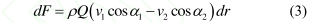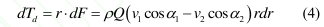 由(yóu)于葉輪受(shou)到的驅動(dòng)力矩Tg是流(liu)體沖擊葉(yè)輪葉片産(chǎn)🚶♀️生的,使用(yòng)微元法對(dui)葉輪上一(yī)個葉片進(jìn)行分析,在(zài)葉片上取(qǔ)半徑爲r處(chù)葉♈片微元(yuán)。半徑r處的(de)葉片微元(yuán)上所受到(dao)的驅動力(lì)dF可表示爲(wei):