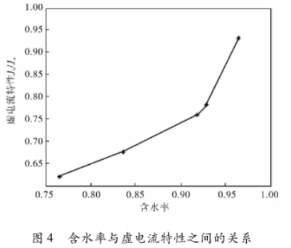 圖4所示爲流(liu)體中含水率與(yu)流量計感應電(diàn)流之間關系。從(cóng)圖4中可以看出(chu),随着流量計流(liu)體中含水率的(de)增加,流體中虛(xū)電流特☎️性(Jb./Jw)也逐(zhú)漸增加。虛電流(liú)特性指的是流(liu)體中含有非導(dao)電⭐物質時虛電(diàn)流Jb與流體爲全(quan)水狀态下虛電(dian)流Jw的比值。從仿(páng)真圖上可以🏃看(kan)出:流體中含水(shuǐ)率與流⭕量計的(de)輸出結果不是(shi)簡單的線性關(guan)系,含水率越大(dà),流量計截面就(jiù)越接近全水狀(zhuang)态下的測量值(zhi)。