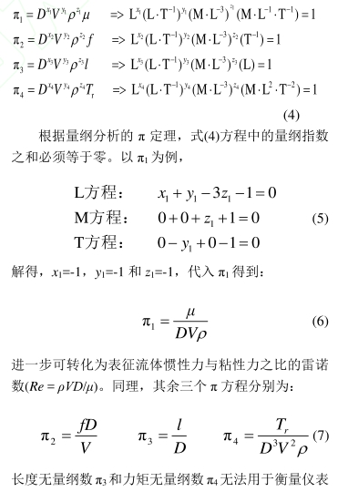 量綱分(fèn)析的第一步是從(cóng)所研究方程中确(què)定合适的變量,第(dì)二步是選擇π方程(chéng)的基本變量,第三(sān)步是确定每個π表(biǎo)達🧡式中基本變量(liàng)的指數,最終确定(ding)關鍵的無量綱參(can)數。式(3)中有f、qvr、B、ρ和Tr六個(ge)變量,.還有一個物(wu)性變量一動力粘(zhan)度✏️μ隐含在方程中(zhong),動力粘度影響流(liú)量計流道中的速(su)度剖面分布,以及(jí)🚶♀️流體沿葉片表面(miàn)和輪毂的流動阻(zu)力,所以,量綱分析(xī)需要使用七個變(biàn)量。