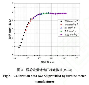 将雷諾(nuo)數作爲标定數據(jù)的橫坐标,代表标(biao)準流量值,将🌈斯特(tè)勞🧑🏾🤝🧑🏼哈爾數作爲标(biao)定數據的縱坐标(biāo),代表流量計對于(yu)标準流量值的輸(shū)出響應。渦輪流量(liàng)計出廠标定數據(jù)的Re-St散點如圖3所示(shi),流量計在不同粘(zhan)度介質下🌈的輸出(chu)響應被重整🔞爲一(yī)條和雷諾數有關(guān)的曲線,而且在一(yī)個阈值(Re=16400)以上,斯特(tè)勞哈爾數變化範(fan)圍小于0.5%。這意味着(zhe),即使校準和工作(zuò)場合使用📐的介質(zhi)粘度不同,隻要雷(léi)諾數超過🐇這個阈(yu)值,經過校準的流(liú)量計示值❗的不确(que)定度仍然比較低(di)。