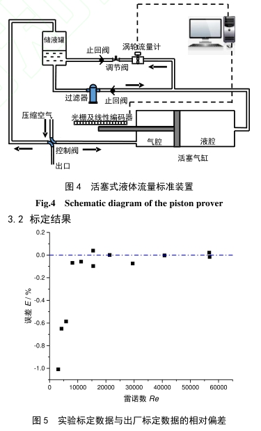 某校準實驗室的(de)小型活塞式液體(tǐ)流量标準裝置⁉️以(yi)丙二醇-水💁溶液爲(wèi)介質,将這台DN25渦輪(lún)流量計作爲🐉期間(jiān)核查對象。裝置使(shi)用壓縮空氣驅動(dong)的18L主動活塞作爲(wei)标準器(如圖4所🈲示(shi)),最大🌈流量260L/min,裝置的(de)擴展不确定度Ue=0.05%(k=2)。該(gai)裝置有“運.行”和“返(fan)回”兩種操作模式(shì)。在“運🏃♀️行”模式中,壓(ya)縮空氣被引入到(dào)氣腔,以恒定的速(su)度🚶推動活塞向右(you)移動,将介質排‼️出(chū)液腔并通過被檢(jian)💔流量計。光❄️栅和線(xian)性編碼🤟器負責确(què)定活塞的位移🧑🏽🤝🧑🏻。當(dang)活塞完成一次行(háng)🍉程後,進入“返回”模(mo)式。控制閥切換使(shǐ)壓縮空氣進入儲(chǔ)液罐,推動活塞向(xiàng)左移動,直🈚至液腔(qiāng)完全被介質填滿(man)。系統調整後,準🔞備(bei)進行下🈲一次檢測(ce)。