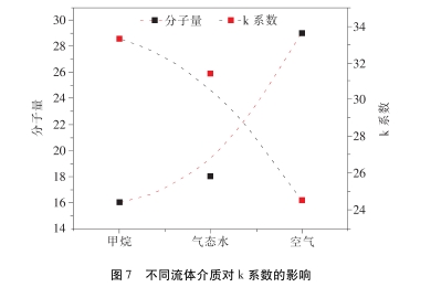 根據(ju)三種氣體介質(zhi)的分子量分别(bié)爲18(H20)、29(空氣)、16(CH4),與k系數(shu)的對應關🏒系如(ru)圖7所示;流體介(jiè)質的分子量越(yuè)大,h系數越小;随(suí)着分📱子量的增(zeng)大、h:系數逐漸減(jiǎn)小。