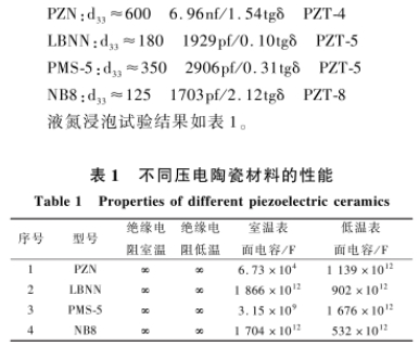 壓(ya)電陶瓷國(guo)内沒有低(di)溫産品,而(er)且相關科(ke)研機構也(yě)沒有進行(háng)過相關研(yan)究,國外有(you)低溫産品(pin)和相關✨實(shí)驗資料,但(dàn)價格昂貴(guì),一般購買(mǎi)不到。與中(zhōng)科院矽酸(suan)鹽研究所(suo)合作,專門(men)配制了4種(zhǒng)材料的壓(ya)電陶瓷,分(fen)别是: