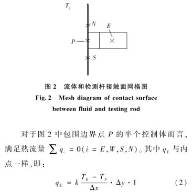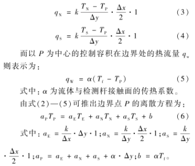 式(6)就是檢(jiǎn)測杆溫度(dù)分布計算(suan)中第三類(lei)邊界條件(jian)在流體與(yǔ)杆端面接(jiē)觸處的具(ju)體應用。