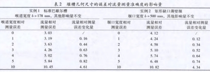 堰槽幾何(he)尺寸的誤差(chà)對測量結果(guo)精度的影響(xiǎng)主🍉要有兩個(ge)方⭐面:一是改(gǎi)變了流量計(jì)算的數學模(mó)型,造成流量(liang)計二☔次儀表(biǎo)計算的顯示(shì)值産生誤差(cha),這種影響我(wǒ)們通過兩個(ge)實例可以看(kan)到。由表2可以(yǐ)看出,堰槽幾(jǐ)何尺寸誤❄️差(cha)的增大可以(yi)造成流量測(cè)量💔誤差的增(zēng)大,且影響量(liang)不🐕斷遞增;二(er)是影響到了(le)水流經過堰(yan)槽🍉時💰的水位(wei),從而對液位(wèi)的測量産🈲生(sheng)附加誤差。