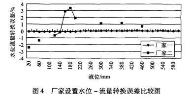 通(tong)過圖4可以看(kàn)出:廠家一的(de)軟件設置爲(wei)30點對照,且液(ye)位點均勻✍️分(fen)布,而廠家二(èr)設置爲10點,不(bu)均勻分布😍,則(zé)廠家一顯示(shì)😍的水✨位流量(liàng)轉換誤差明(míng)顯小于廠家(jiā)二。