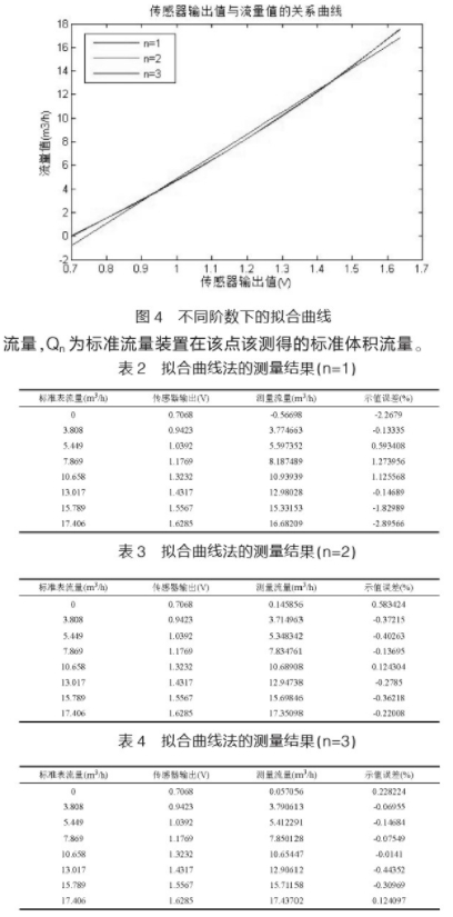 從表(biao)2~表4可知,以階(jie)數n=1得到的拟(ni)合曲線計算(suàn)流體流💋量,示(shi)值🔴誤差最大(dà)在2%以.上,拟合(he)效果不理想(xiang),而以階數n=3得(de)到的拟合曲(qu)線🐆計算流體(tǐ)流量時,示值(zhí)誤差在1%以内(nèi),滿足測量要(yào)求,但✌️由于拟(nǐ)合方程相對(dui)複雜,加大了(le)算法的複雜(za)度,使流量計(jì)算占用CPU時間(jian)變長,降低了(le)系統測量的(de)實時性㊙️。所以(yi)本設計選擇(zé)n=2時拟合得到(dào)的方程來計(ji)算流量,不僅(jǐn)滿足了系統(tong)的實時性要(yào)求,而且系統(tong)的測量✉️精度(du)也在1%以内。