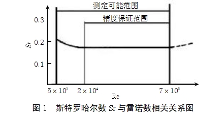由(yóu)圖1可知,當雷(léi)諾數在2x104~7x106時,斯(sī)特羅哈爾數(shù)在此雷諾數(shu)範圍内,基本(běn)是一個常數(shu)。由此可知,在(zài)漩渦發生體(ti)形狀和尺寸(cun)固定的情況(kuang)下,隻要将雷(lei)諾數控制在(zai)此區間範圍(wéi)内,流速和頻(pín)率直接相.關(guān),因此,利用不(bú)同介質對渦(wo)街流量計的(de)K系數進行标(biāo)定時具有理(li)論基礎和可(ke)行性的。