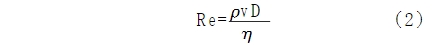 式中(zhōng):ρ爲流體密度(dù),kg/m³;v爲流體流速(su),m/s;D爲流場的特(te)征長度(圓形(xing)管道爲管道(dao)當量直徑),m;η爲(wèi)流.體的動力(lì)黏度,Pa's。