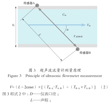 時(shi)差檢測法(fǎ)原理爲超(chao)聲波脈沖(chong)在上下遊(you)的兩側傳(chuan)感器間來(lai)回傳播,當(dāng)有流體流(liu)動時,由于(yú)向下遊方(fang)向的信号(hào)傳播時間(jian)比向.上遊(you)方向的短(duǎn),根據時❓差(chà)與流體速(su)度成正比(bi)關系,檢測(cè)出流體的(de)流速和🧑🏾🤝🧑🏼方(fang)向,見圖3。