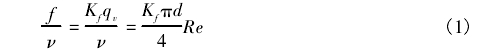 由式(5)~(7)可知,無(wu)論工作介質是液(yè)體還是氣體,渦輪(lún)流量計的标定誤(wu)差模型都包括兩(liang)部分,僅和雷諾數(shu)有關的流體阻力(lì)項,和體積流量qv有(you)關的軸承阻力項(xiàng)。Lee的研究工作忽略(lue)了介質的運動粘(zhan)度對軸承阻力矩(ju)的影響,按照Lee的原(yuan)始模型,隻要雷諾(nuo)數相同,無論動力(lì)粘度(對于液體)、工(gōng)作壓力(對于氣體(ti))如何變化,僅考慮(lü)流體粘性阻力的(de)标定曲線一定不(bú)會出現分散,而軸(zhou)承阻力項恰怡是(shi)造成曲線分散的(de)原因,對于液體介(jie)質,不同的動力粘(zhan)度導緻曲線分散(san)。對于氣體,需要進(jin)--步分析式(5)~(7)中的軸(zhou)承阻力項。由式(1)可(ke)知,雷諾數通過運(yùn)動粘度關聯體積(jī)流量,将式(5)~(7)中代表(biao)軸承阻力項的共(gong)有部分作如下變(biàn)換: