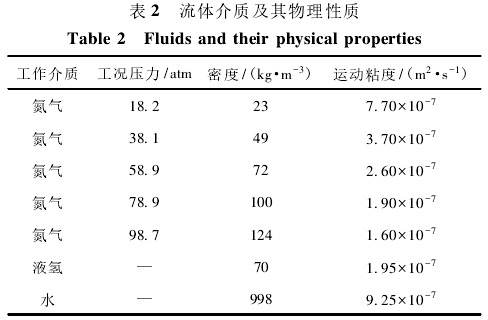 在測量推(tui)進系統的液氫流(liú)量過程中,爲了降(jiàng)低危險和實驗成(cheng)本,使用高壓氮氣(qi)模拟液氫标定一(yī)台1.5inch3渦輪流量計,實(shí)驗工況及物性參(can)數如表2所示。