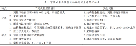 使用(yòng)蒸汽流量計量的(de)企業一般爲熱力(li)公司,根據其經營(yíng)業務的要求,熱力(lì)公司需要與熱電(dian)廠進行⁉️貿易對接(jie),因此🤟在選用流量(liàng)計上要注意2點,其(qí)一是流量計的精(jing)度等級必須足夠(gòu)高,其二是經濟效(xiao)益上必須符合熱(re)力公💯司的需求。節(jiē)流式差壓流量計(ji)和渦街流量計比(bǐ)較,其優缺點見表(biao)1。