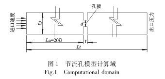 利用孔(kǒng)闆模型(xing)的軸對(duì)稱性的(de)特征,在(zài)圓柱坐(zuo)标系下(xià)💃建立它(tā)們的1/2實(shí)體模型(xíng),取壓方(fang)式采用(yong)D-D/2取壓其(qi)計算域(yù)如圖1所(suo)示.孔闆(pan).上遊🎯直(zhi)管段長(zhǎng)度爲20D,充(chong)足的上(shàng)遊管長(zhang)能夠确(què)保液流(liú)✉️在孔闆(pan)上遊爲(wei)充分發(fa)展的湍(tuan)流流動(dong).模型具(jù)體尺寸(cùn),其中D=12.3mm,β=0.247,Lu=246mm,Lt=494mm,t=2mm.