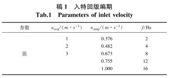 文中所(suo)選用的(de)流體介(jiè)質爲常(chang)溫狀态(tai)下的水(shui).人口流(liú)速設🐉定(dìng)爲某一(yi)-頻率下(xià)的正弦(xian)流動u=uarg+uamp·sin(2πƒt),選(xuǎn)擇不同(tong)平均流(liu)速uarg、流速(sù)振幅uamp和(hé)振蕩🌏頻(pín)率ƒ參數(shu)作爲節(jie)流孔的(de)人口流(liu)速,具體(tǐ)參數見(jian)表1.利用(yong)UDF功能将(jiāng)該自定(dìng)義速度(dù)函數加(jia)載在模(mo)型的速(su)度人口(kou).