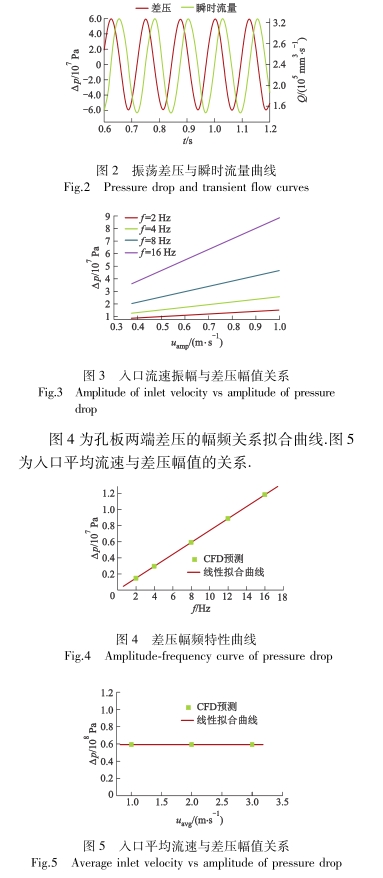 圖(tú)3爲人口(kou)流速振(zhèn)幅與差(chà)壓幅值(zhi)的關系(xi).對于同(tóng)一振✍️蕩(dang)🐇頻率📧的(de)入口流(liu)速,孔闆(pǎn)兩端差(chà)壓幅值(zhi)随人口(kou)流速振(zhèn)幅增大(da)而線性(xìng)增大,但(dan)其線性(xìng)增長系(xi)數與振(zhen)蕩頻🚶♀️率(lǜ)有關.