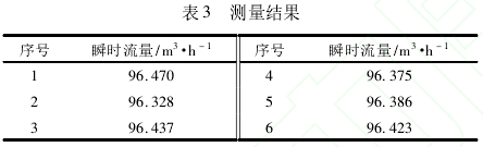 爲驗證流(liú)量計穩定性,在(zài)實驗平台正常(chang)工作的情況下(xià)調🌈節流速,使得(dé)平均流量在96m3/h的(de)前提下連續采(cai)集6組瞬時流量(liàng)數據,所測結果(guǒ)如表3所示。