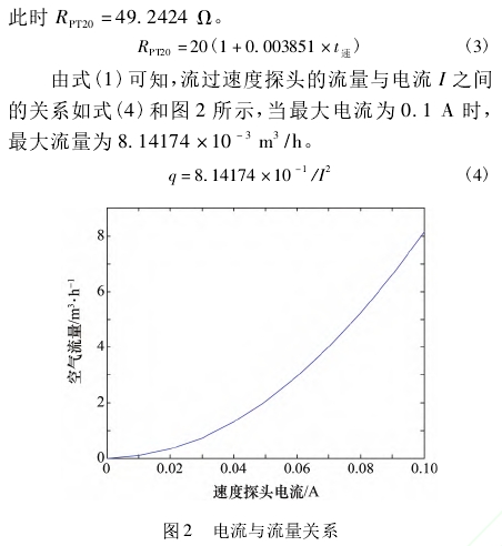 本流量計的(de)速度電阻最大(dà)允許電流爲100mA。如(ru)讓雙探頭溫差(chà)恒定🈲100℃,假設當前(qian)環境溫度20℃,速度(dù)探頭溫度爲120℃,根(gen)據鉑電阻公式(shi)(3)可得