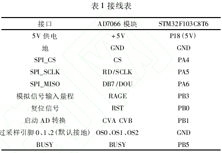 控制電路以STM32F103C8T6爲(wèi)核心組成最小(xiǎo)系統,引出足夠(gòu)的I/O口以作拓展(zhan)。因爲信号調理(li)電路輸出的電(diàn)勢差U2具有正負(fu)‼️極性,所以STM32F103C8T6自帶(dai)AD采集無法滿足(zú)要求,選用AD7066芯片(pian)進行采👌集。AD7066自帶(dài)數字濾波器,有(yǒu)8個采集通道,支(zhī)持真正±10V或±5V的雙(shuāng)極性信号🚩輸入(ru)電流。AD7066有并口接(jiē)線和SPI串口接線(xiàn)兩種接⭐線方式(shì),此處采用SPI串口(kou)接線。STM32最小系統(tong)與AD7066之間的接線(xian)🔞如表1所示。AD7066的V1~V4口(kou)分别采集U1~U4的電(diàn)壓值。STM32通過對電(diàn)位器X9111的♻️RL控制改(gǎi)🥵變電源輸出電(diàn)壓大小。STM32的PB13口接(jiē)X9111的SCK口,PB14口接X9111的SO口(kou),PB15口接SI口。