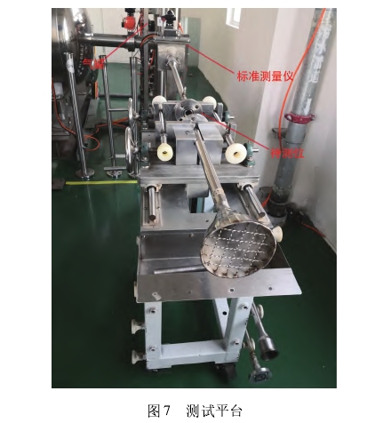 爲了驗證本(běn)流量計的可行(háng)性與穩定性,對(duì)流量計進行系(xi)統性的測試。每(měi)次測試時間爲(wei)30s,由音速噴嘴向(xiàng)管道均勻吹🐪風(fēng)。測試管道内徑(jing)爲80mm,大氣壓力爲(wei)100.628kPa,室🏃♂️溫爲29.5℃。在管道(dao)前端由标準質(zhì)量測量儀測得(dé)噴嘴總量,管道(dào)後端本流量計(ji)測瞬時流量。待(dai)測試完成,調節(jiē)流速,繼續下一(yī)組測量‼️。測試平(píng)台如圖7所示,所(suǒ)測結果如表2所(suo)示。