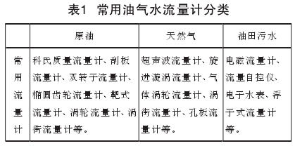 油(yóu)氣田内油、氣(qi)水主要計量(liang)儀表如表1所(suo)示。