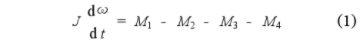 式中J一葉(yè)輪的慣性矩;dω/dt一(yi)葉輪的旋轉加(jia)速度;M1一流👈體驅(qū)動力矩;M2一黏性(xìng)阻力距;M3一軸承(chéng)摩擦阻力距;M4一(yī)磁阻力距。