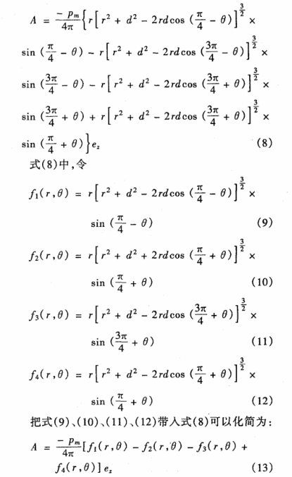 把式(4)、(5).(6).(7)帶(dài)人式(1)可以(yǐ)得到矢量(liang)磁位A的表(biǎo)達式: