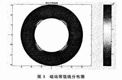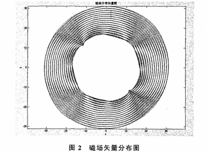 利用(yòng)MATLAB數值分析(xi)方法對式(shì)(15)進行編程(cheng)求解,得到(dào)了圖2磁場(chǎng)矢量分布(bu)圖和圖3磁(cí)場等值線(xian)分布圖。圖(tu)2中箭頭的(de)指向代表(biǎo)了磁感應(ying)強度即磁(cí)場的方向(xiang),它是由式(shi)(15)中🤞沿e,方向(xiang)🚩(半徑方向(xiang))和沿🛀eo方向(xiàng)(垂直于半(ban)徑方向)的(de)礅感應強(qiang)度共同作(zuò)用的結.果(guǒ)。由圖2可以(yi)直觀看出(chu)在外流式(shi)電磁流量(liàng)計和油管(guan)構📱成的環(huan)形空間中(zhong)磁場呈規(gui)🧡律性的對(duì)稱分布。圖(tú)3中:色标顔(yá)色從♉紅色(sè)變爲藍色(se)表示磁場(chǎng)強度由強(qiang)逐漸變弱(ruo)。由圖🥵3可以(yi)直觀看出(chū)在外📧流式(shì)電磁流量(liàng)計和油管(guan)構成的環(huan)形空間中(zhōng)磁場呈規(guī)律性的對(dui)稱分布;在(zài)四個❗磁極(ji)附近的磁(cí)場強度的(de)值很大,沿(yán)着徑向迅(xùn)速衰減。.由(yóu)圖2和圖3可(kě)以知道:在(zài)環形空間(jian)中,磁場呈(cheng)規律性的(de)對稱分布(bu),四個磁極(ji)附近🤟磁場(chǎng)強度的值(zhí)相對較大(dà),其它位置(zhi)磁場強度(dù)的值相對(dui)較弱。