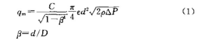 式中(zhong):qm爲質量流(liú)量,kg/s;C爲流出(chū)系數;D爲管(guǎn)道内徑,m;ε爲(wei)節流件正(zhèng)端取壓口(kou)平面上的(de)氣體膨脹(zhang)系數;d爲工(gong)作條件下(xia)💞節流件的(de)開孔🌈直徑(jìng),m;ρ爲節流件(jiàn)人口端流(liú)體密度,kg/m³.