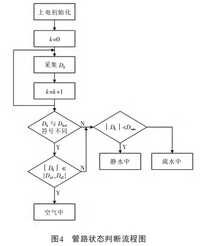 圖3所示(shì)的流程爲測(cè)量系統采樣(yang)數據的處理(lǐ)過程,因此未(wei)涉🔴及勵磁、通(tōng)信等功能模(mo)塊。系統對采(cǎi)集的原始🚩數(shù)據進行判斷(duàn),區分電極處(chù)于空氣、靜水(shui)或流水等三(san)種不同狀态(tài),如圖4所示。