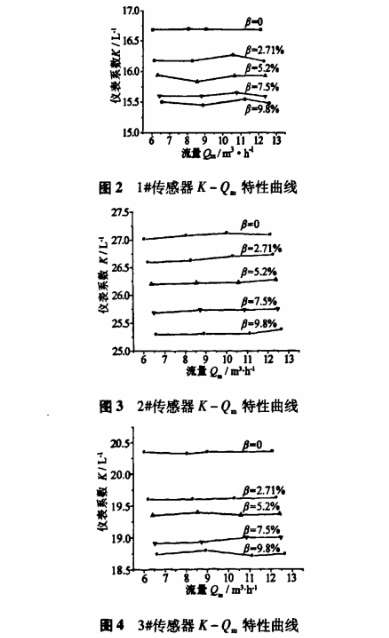 (2)随(suí)體積含(hán)氣率β的(de)增加,3台(tai)渦輪的(de)儀表系(xì)數K均有(you)減小的(de)趨勢。