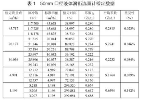 在(zai)開發過程(chéng)中,渦街流(liú)量計的校(xiao)準檢定是(shi)必不可少(shao)的。通過校(xiao)準可以确(què)定渦街流(liu)量計的性(xing)能指标,尋(xun)找🔞影響儀(yí)表🌈特性的(de)各種因素(su),爲提高儀(yí)表性能提(tí)供依據。本(běn)文對50mm口徑(jìng)🐇液體渦街(jie)流量計采(cǎi)用靜态👅容(rong)積法進行(hang)校準檢定(ding),其流量檢(jian)定範圍爲(wei)1~50m³/h,流量檢定(dìng)點分别爲(wèi)🚩2%、10%、20%、40%.91%五點。具體(tǐ)檢定數據(jù)如表1所示(shi):