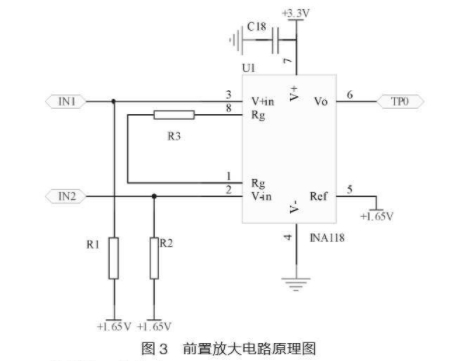本文采(cǎi)用儀表放(fàng)大器INA118作爲(wei)前置放大(da)電路,以此(ci)完成壓電(dian)傳感器的(de)輸入信号(hao)放大轉換(huan)。如圖3,INA118采用(yòng)單🤞電源供(gòng)電,Ref爲信号(hao)地的參考(kǎo)電平,爲+V∞/2。