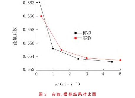 水(shui)由離心泵從水箱(xiāng)抽出後,經過孔闆(pan)流量計,通過彎管(guan)再流回水箱。其中(zhōng)孔闆流量計爲标(biāo)準型,管道内徑40mm,孔(kong)闆🔆口徑35mm,孔闆厚度(du)5mm。在不同的閥門開(kai)度下,測試孔闆流(liu)量計壓差,計算流(liú)量及流量計流量(liàng)系數。實驗、模拟💚結(jie)果對比見圖3。